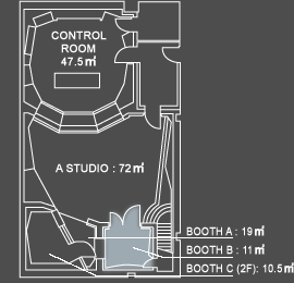Steinway&Sons D274(Full Concert Grand)を設置している。通常はPiano以外も録音するBoothでPianoをBoothの外へ出し、各楽器のアンプを鳴らしたり、ドラムなども録音できるサイズと音響特性になっている。
